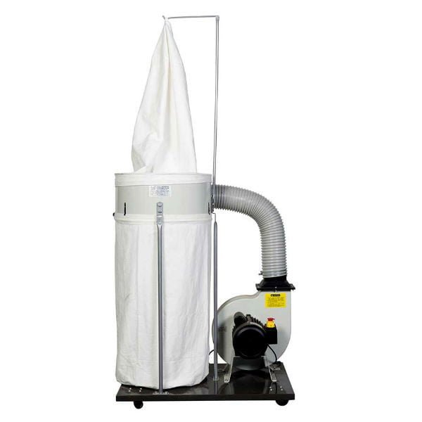A great value for money dust collector for industrial or home workshop use. It has a 2 hp motor driving a fully balanced heavy duty fan/impeller constructed from mild steel and has a rated air flow of up to 1200 cubic feet per minute [+ or - 10 percent, the flow could be lower and is dependent on the length and diameter of your suction pipes].